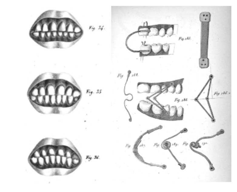 Illustrations sourced from The History of Orthodontics in the Illustrated Encyclopedia of the History of Dentistry by Dr. Andrew I. Spielman. Available at: https://historyofdentistryandmedicine.com/history-of-orthodontics/